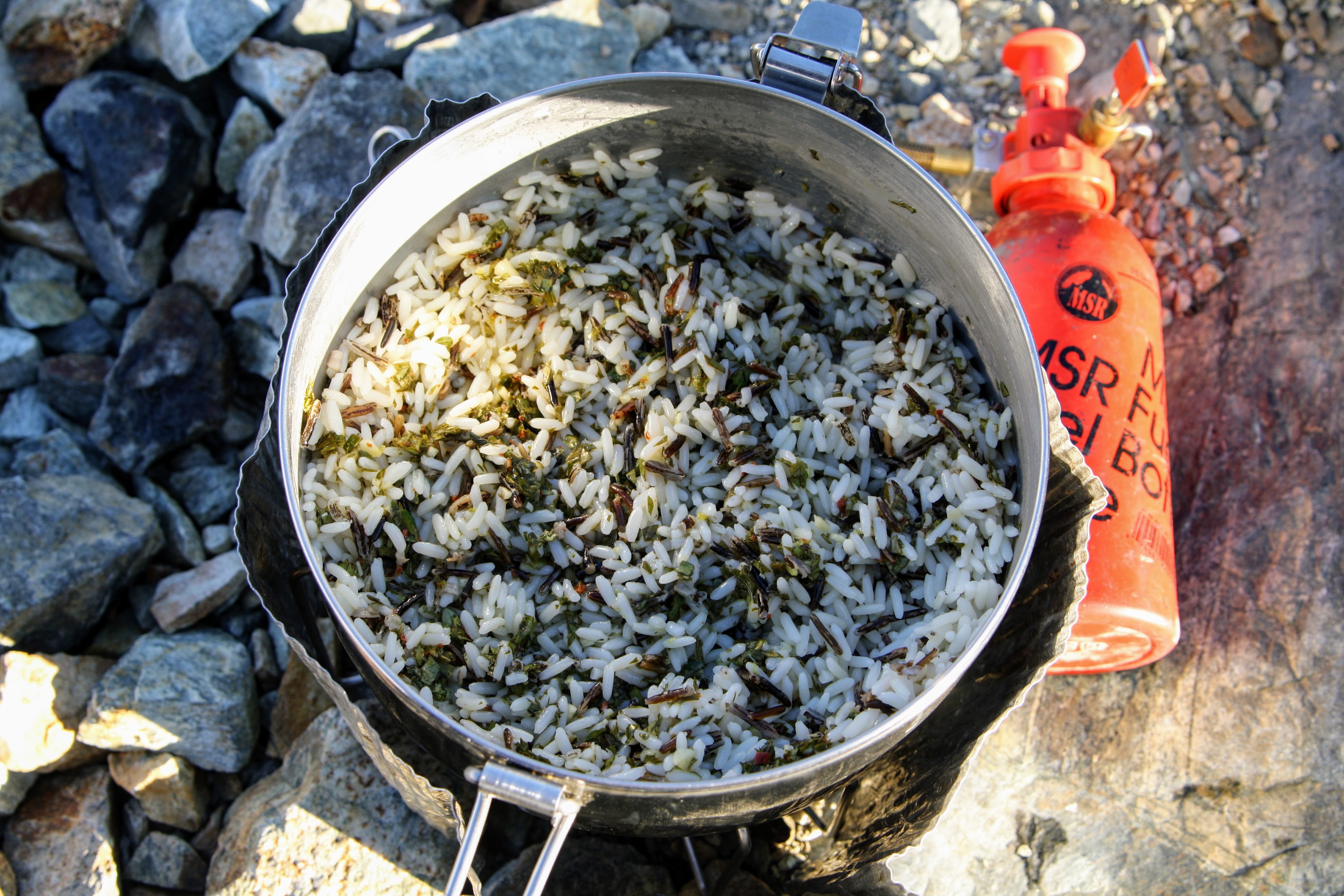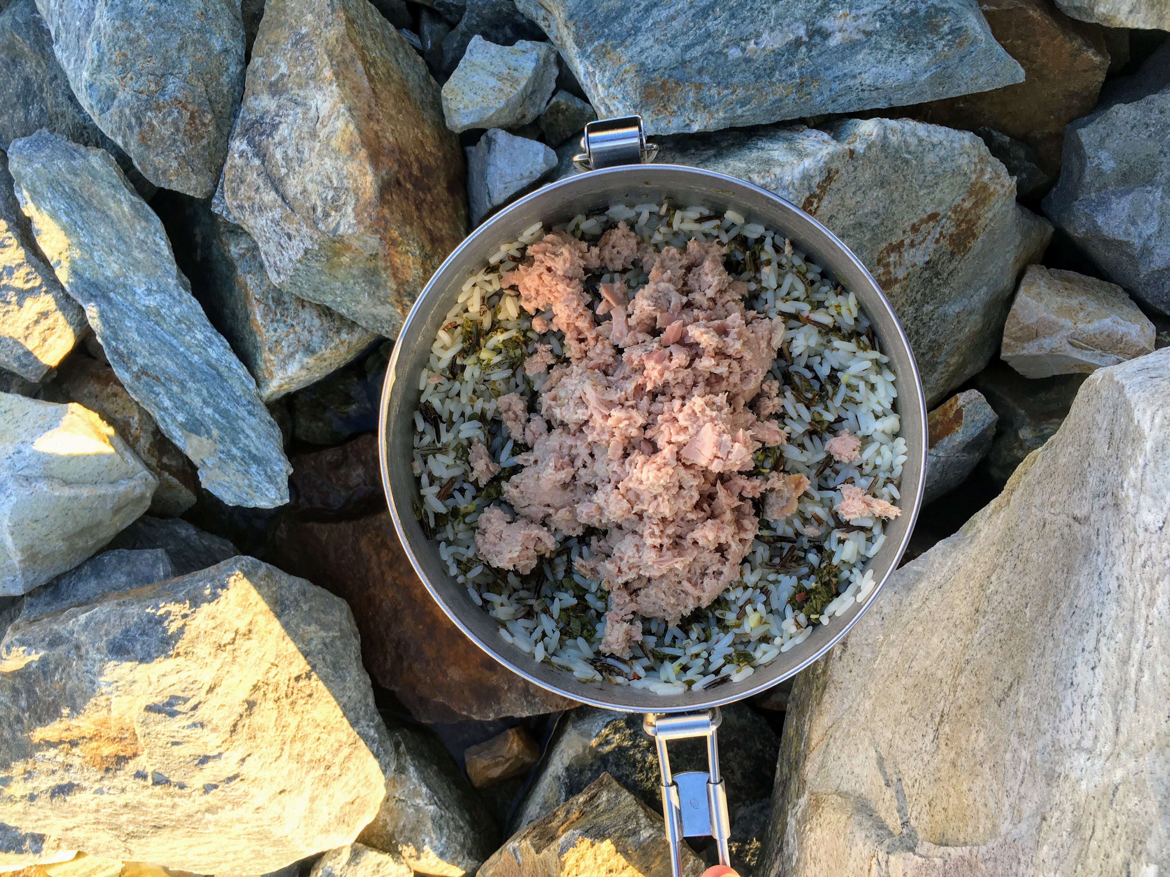 The herby chimichurri sauce provides a big flavor boost to the rice and tuna. In addition to just being delicious, tuna is very high in protein and makes a great meal while backpacking.