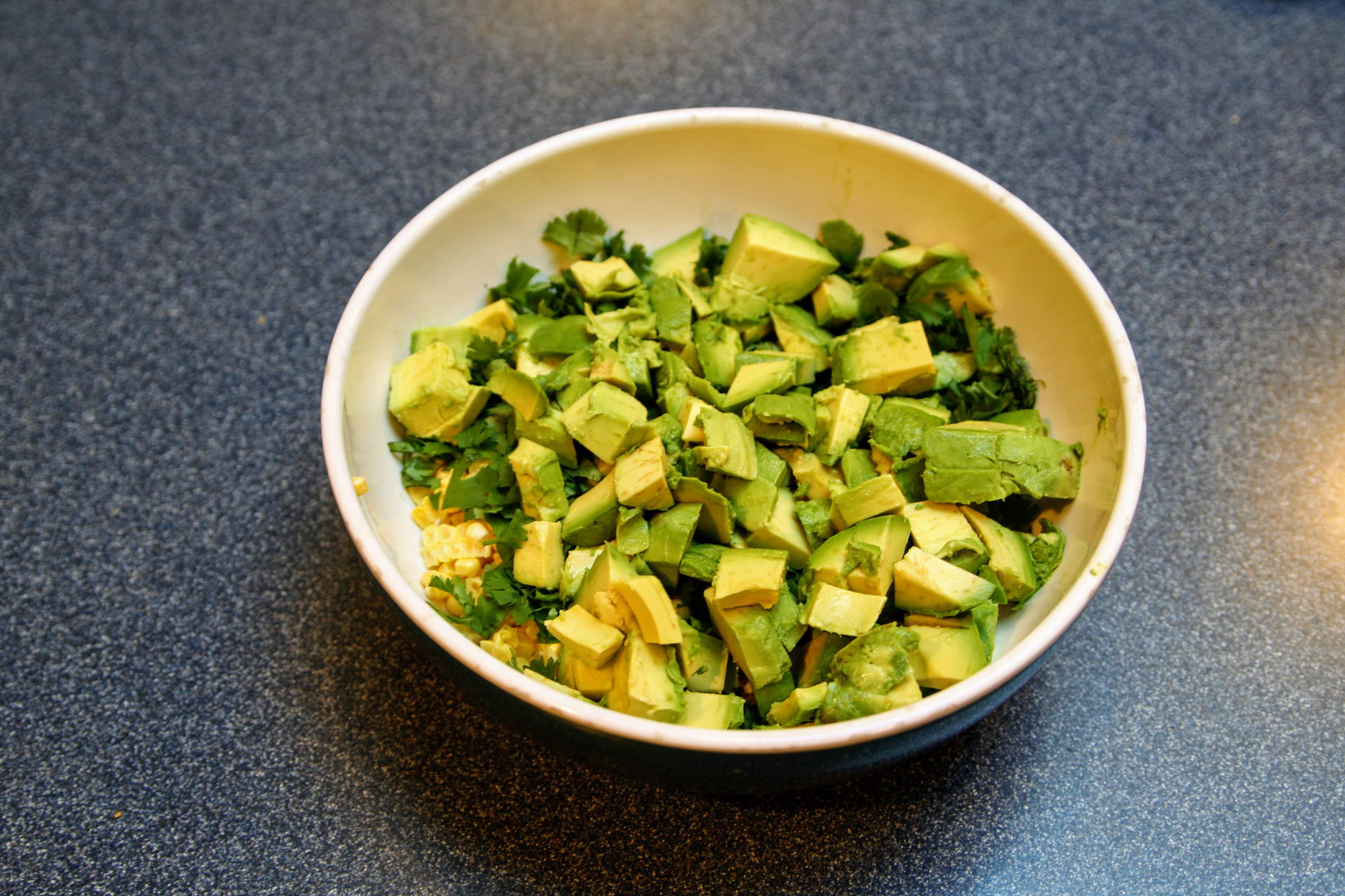 In a large bowl, combine the corn, jalapeno, avocado, cilantro, and lime juice. Season with salt. Taste and make adjustments to the lime and salt. If it tastes flat, add more lime. If it tastes underwhelming, add more salt. Continue making adjustments until it tastes right.
