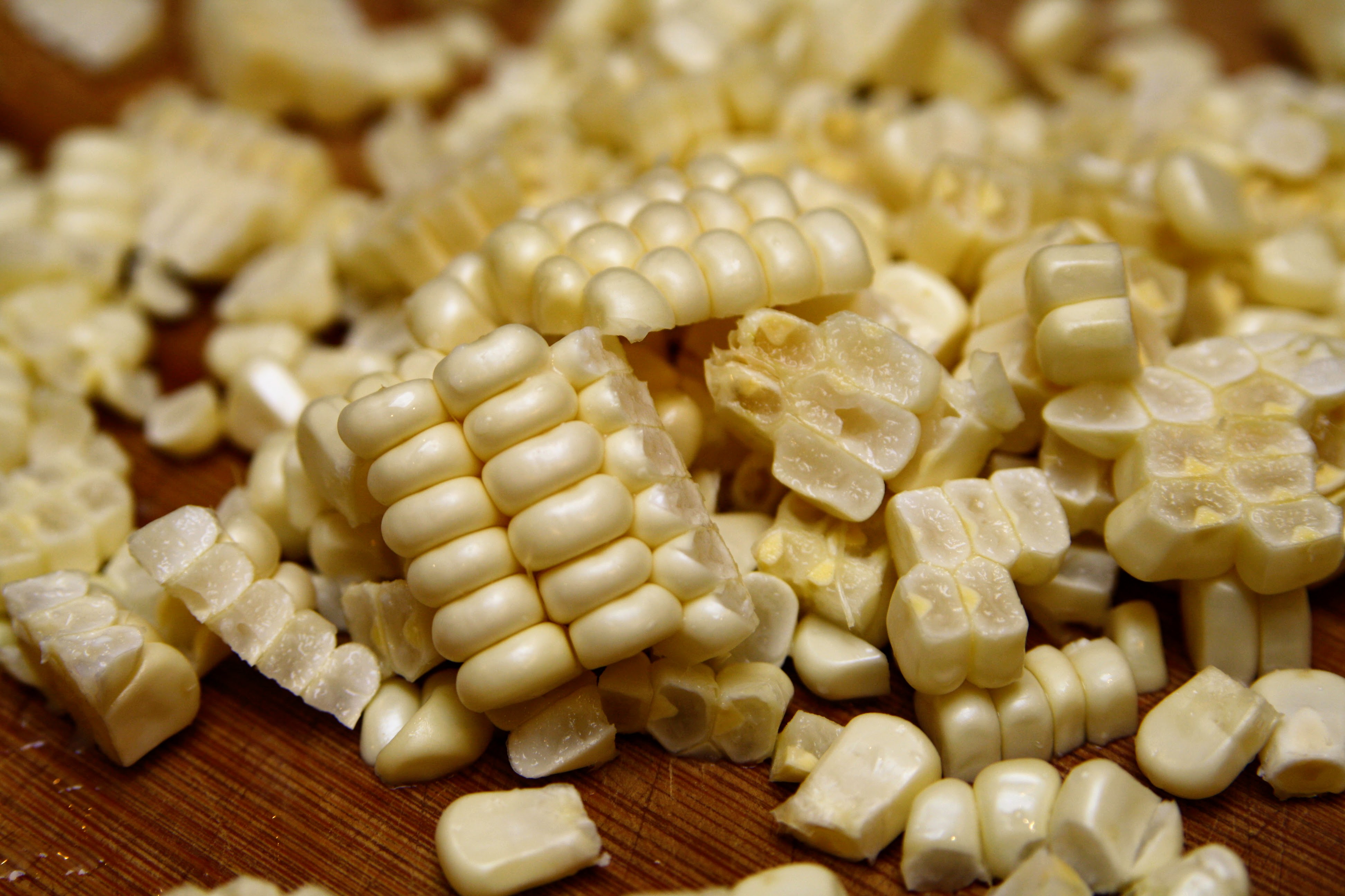 Cut the corn from the ear and toss in a small bowl with the 2 tsp olive oil, 1 tsp salt, and ¼ tsp red pepper flakes. Set aside.